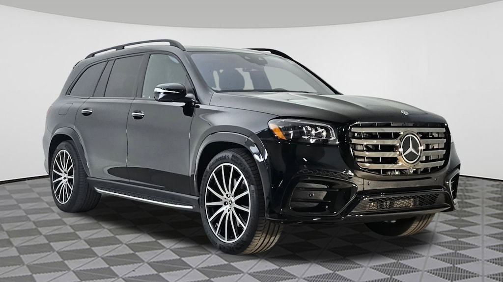Black 2025 Mercedes-Benz GLS 450 4MATIC® 9-Speed Automatic 3.0L I6 5-Zone Climate Control, 6-Seat Configuration, Acoustic Comfort Package, Active Multicontour Front Seats w/Massage Feature, AIR BALANCE, AMG® Bodystyling, AMG® Brushed Stainless Steel Sports Pedals, AMG® Floor Mats, AMG® Line Exterior, AMG® Rear Apron, AMG® Side Skirts in Body Color, AMG® Sport 3-Twin-Spoke Steering Wheel, Dark Chrome Grille w/4 Slats, Front and Rear Flared Wheel Arches in Body Color, Head-Up Display, Heated Armrest, Heated Rear Armrests, Heated Rear Seats, Heated Steering Wheel, High-Gloss Black Elements, Infrared-Reflecting Glass, Large Front Brake System, MAGIC VISION CONTROL, Matte Black Roof Rails, MBUX Interior Assistant, Mercedes Star Pattern Logo Projectors, Night Package, Pinnacle Trim Package, Rapid Heating Front Seats, Soft-Close Doors, Temperature Controlled Cupholders, Trailer Hitch, Trailer Maneuvering Assist, Warmth & Comfort Package, Wheels: 22" AMG® Multi-Spoke Alloy w/Black Accents.