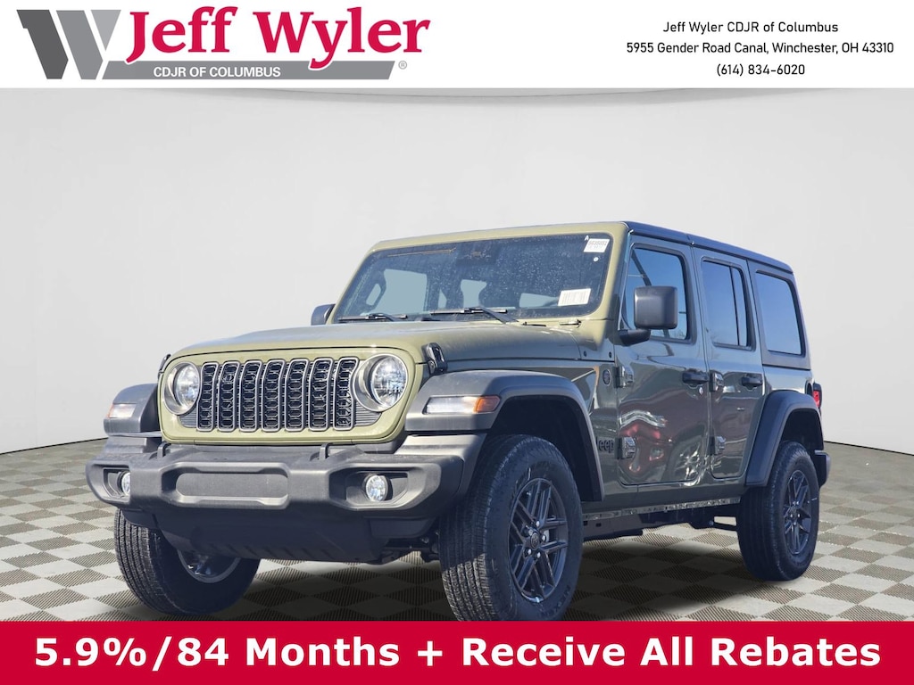Jeff Wyler Columbus Auto Mall is delighted to offer this good-looking and fun 2026 Jeep Wrangler Sport S in 41. Well equipped with: Convenience Group (2-Door Passive Entry, Front Door Locks, Air Conditioning with Auto Temp Control, Air Filtering, Cluster 7.0" TFT Color Display, Emergency/Assistance Call, Heated Front Seats, Heated Steering Wheel, and Universal Garage Door Opener), LED Headlamp and Fog Lamp Group (Front LED Fog Lamps and LED Premium Reflector Headlamps), Quick Order Package 24S Sport S (Advanced Brake Assist, Automatic Headlamps, Corning Gorilla Glass, Deep Tint Sunscreen Windows, Enhanced Adaptive Cruise Control, Full Speed Forward Collision Warning Plus, Power Heated Mirrors, Premium Wrapped Steering Wheel, Security Alarm, Sun Visors with Illuminated Vanity Mirrors, and Wheels: 17" x 7.5" Gray), 12.3" Touchscreen Display, 3.45 Overall Top Gear Ratio, 4-Wheel Disc Brakes, 4G LTE Wi-Fi Hot Spot, 8 Speakers, ABS brakes, Air Conditioning, AM/FM radio: SiriusXM with 360L, Apple CarPlay, Apple CarPlay/Android Auto, Aux Battery, Black 3-Piece Hard Top, Brake assist, Compass, Connectivity - US/Canada, Delay-off headlights, Driver door bin, Driver vanity mirror, Dual front impact airbags, Dual front side impact airbags, Electronic Stability Control, For More Info, Call 800-643-2112, Freedom Panel Storage Bag, Front anti-roll bar, Front Bucket Seats, Front Center Armrest w/Storage, Front fog lights, Front reading lights, Google Android Auto, Illuminated entry, Integrated Center Stack Radio, Integrated roll-over protection, Jeep Trail Rated Kit, Low tire pressure warning, MOPAR All-Weather Floor Mats, Myflexcare Service Plan, No Soft Top, Non-Lock Fuel Cap Without Discriminator, Normal Duty Suspension, Occupant sensing airbag, Outside temperature display, Overhead airbag, Panic alarm, ParkView Rear Back-Up Camera, Passenger door bin, Passenger vanity mirror, Power steering, Power windows, Radio data system, Radio: Uconnect 5 with 12.3" Display, Rear anti-roll bar, Rear reading lights, Rear Window Defroster, Rear Window Wiper/Washer, Remote keyless entry, SiriusXM Radio Service, SiriusXM with 360L, Speed control, Split folding rear seat, Steering wheel mounted audio controls, Stop-Start Dual Battery System, Tachometer, Telescoping steering wheel, Tilt steering wheel, Traction control, Trip computer, Variably intermittent wipers, and Wheels: 17" x 7.5" Black Steel Styled.Wyler Family First Package Includes: NanoCure Appearance Protection: Exterior & Interior Chemical Sealant Applied to Protect Against Environmental Hazards (7 Year Warranty Coverage). Pulse- Rear End Collision Avoidance System Theft Deterrent Strategy gives you 5 Years of Coverage against vehicle theft, Offering up to a $5,000 benefit. Price does not include Tax, Title, License and Documentary Fee$1000 - 2026 National Retail Bonus Cash . Exp. 04/30/2026 $1000 - 2026 National Stellantis Loyalty Bonus Cash . Exp. 04/30/2026 $500 - 2026 National 2026 Military Bonus Cash . Exp. 01/04/2027