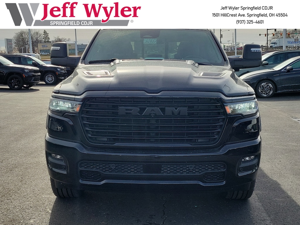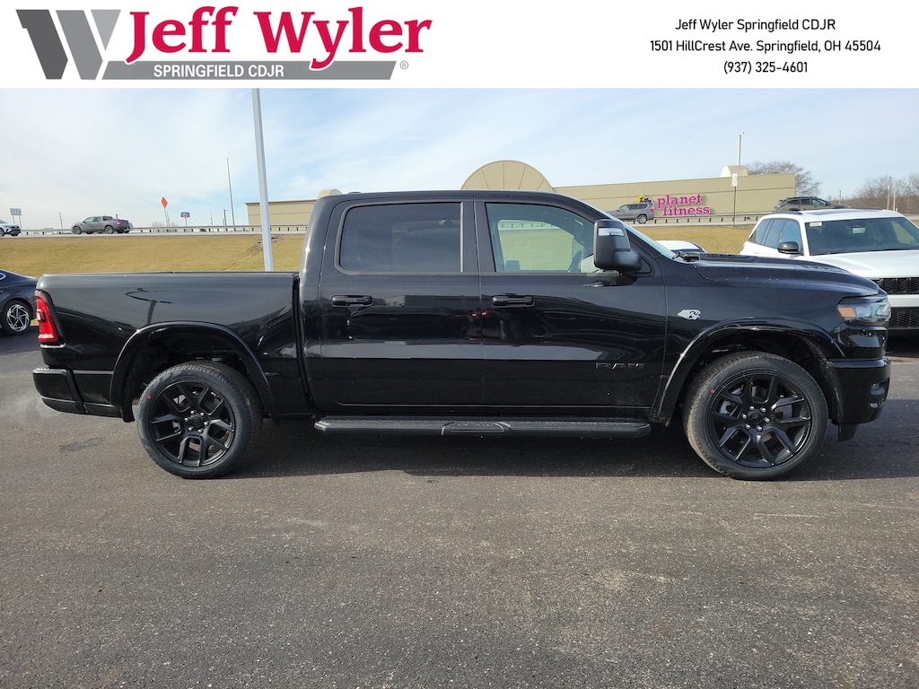 Jeff Wyler Springfield Auto Mall is excited to offer this attractive-looking 2026 Ram 1500 Laramie in Diamond Black Crystal Pearlcoat. Well equipped with: Advanced Safety Group II (12-Way/1-Way Trailer Connector, Active Driving Assist System, Drowsy Driver Detection, Evasive Steer Assist, Exterior Mirrors Approach Lamps, Intersection Collision Assist System, Surround View Camera System, and Traffic Sign Recognition), Bed Utility Group (Exterior 115V AC Outlet, MOPAR 4 Adjustable Cargo Tie-Down Hooks, and MOPAR Spray in Bedliner), Laramie Level 2 Equipment Group (14.4" Touchscreen Display, 4G LTE Wi-Fi Hot Spot, Cluster 12" TFT Color Display, Connected Travel and Traffic Services, Connectivity - US/Canada, Front Passenger Interactive Display, GPS Navigation, Harman/Kardon 19 Speaker Premium Sound, Integrated Center Stack Radio, Integrated Voice Command with Bluetooth, Power Tailgate, Radio: Uconnect 5 Nav with 14.4" Display, Rain Sensitive Windshield Wipers, SiriusXM Radio Service, SiriusXM with 360L, and USB Host Flip), Night Edition (Accent Color Door Handles, Accent Color Premium Power Mirrors, Accent Color Tailgate Handle, Anti-Spin Differential Rear Axle, Auto Power-Folding Mirrors, Auto-Dimming Exterior Driver Mirror, Black Exterior Truck Badging, Black Headlamp Bezels, Black Interior Accents, Black Painted Exterior Mirrors Caps, Black Tail Lamp Bezels, Body Color Front Bumper, Body Color Rear Bumper with Step Pads, Convex Wide-Angle Exterior Mirror Insert, Dual Exhaust with Black Tips, Exterior Mirrors Courtesy Lamps, Exterior Mirrors with Heating Element, Exterior Mirrors with Memory, Exterior Mirrors with Supplemental Signals, Grille Surround 3 Black Texture 2 Black, Pirelli Brand Tires, Proximity Approach/Departure Lamps, RAM Grille Badge - Black, Sport Performance Hood, and Wheels: 22" x 9" Forged Aluminum), Quick Order Package 27H Laramie, Technology Group (Heads-Up Display and LED CHMSL Lamp), Towing Technology Group (Trailer Hitch Line-Up Assist), Trailer Tow Group (Trailer Brake Control, Trailer Reverse Steering Control, and Trailer Tire Pressure Monitoring System), 10 Speakers, 240 Amp Alternator, 4-Wheel Disc Brakes, ABS brakes, Active Noise Control System, Adjustable pedals, Air Conditioning, Alloy wheels, AM/FM radio: SiriusXM with 360L, Apple CarPlay/Android Auto, Audio memory, Auto High-beam Headlights, Auto-dimming door mirrors, Auto-Dimming Exterior Passenger Mirror, Auto-dimming Rear-View mirror, Automatic temperature control, Black Exterior Mirrors, Black Power-Fold Trailer Tow Mirrors, Brake assist, Bumpers: chrome, Chrome Exterior Mirrors, Compass, Delay-off headlights, Dome Dual LED Reading Lamp, Driver door bin, Driver vanity mirror, Dual front impact airbags, Dual front side impact airbags, Dual-Pane Panoramic Sunroof, E-Locker Rear Axle, Electronic Stability Control, Forward and Reverse Utility Lights, Front anti-roll bar, Front Bucket Seats, Front Center Armrest w/Storage, Front dual zone A/C, Front fog lights, Front License Plate Bracket, Front reading lights, Front wheel independent suspension, Fully automatic headlights, Garage door transmitter, Hands-Free Active Driving Assist System, Heated door mirrors, Heated front seats, Heated rear seats, Heated steering wheel, Illuminated entry, Leather steering wheel, Leather Trimmed Bucket Seats, LED Dome/Reading Lamp, Low tire pressure warning, Memory seat, Mirror Clearance/Running Lights, Mopar Black Tubular Side Steps, Navigation System, Occupant sensing airbag, Off-Road Information Pages, Outside temperature display, Overhead airbag, Overhead console, Panic alarm, ParkView Rear Back-Up Camera, Passenger door bin, Pass Available Incentives: $1000 - 2026 National Bonus Cash . Exp. 03/02/2026 $2000 - 2026 National Select Inventory Bonus Cash. Exp. 03/02/2026 $3500 - 2026 National Retail Consumer Cash . Exp. 03/02/2026 $500 - 2026 Great Lakes BC Truck Month Bonus Cash . Exp. 03/02/2026 $500 - 2026 National 2026 Military Bonus Cash . Exp. 01/04/2027