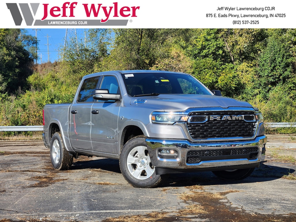 Jeff Wyler Chrysler Dodge Jeep of Lawrenceburg is proud to offer this superb-looking 2026 Ram 1500 Big Horn/Lone Star in Billet Silver Metallic Clearcoat. Well equipped with: Big Horn Level 1 Equipment Group (115V Auxiliary Power Outlet, 2nd Row In Floor Storage Bins, 3 Rear Seat Head Restraints, 4 Way Front Headrests, 400W Inverter, Auto Power-Folding Mirrors, Auto-Dimming Exterior Driver Mirror, Auto-Dimming Rear-View Mirror, Black Exterior Mirrors, Black Premium Power Mirrors, Body Color Fender Flares, Bucket Seats, Center Console Parts Module, Convex Wide-Angle Exterior Mirror Insert, Deluxe Cloth Bucket Seats, Exterior Mirrors Courtesy Lamps, Exterior Mirrors w/Heating Element, Exterior Mirrors w/Supplemental Signals, Front Seat Back Map Pockets, Full Length Floor Console, Glove Box Lamp, Heated Front Seats, Heated Steering Wheel, Leather Wrapped Steering Wheel, Manual Adjust 4-Way Front Passenger Seat, Power 2-Way Driver Lumbar Adjust, Power Adjust 8-Way Driver Seat, Power Adjustable Pedals, Rear 60/40 Folding Seat, Rear Center Armrest, Rear Dome w/On/Off Switch Lamp, Rear Power Sliding Window, Rear Window Defroster, Secondary Active Grille Shutters, SiriusXM Radio Service, SiriusXM Satellite Radio, Steering Wheel Mounted Audio Controls, Sun Visors w/Illuminated Vanity Mirrors, and Universal Garage Door Opener), Quick Order Package 27Z Big Horn, 33 Gallon Fuel Tank, 4-Wheel Disc Brakes, 48V Belt Starter Generator, 4G LTE Wi-Fi Hot Spot, 6 Speakers, ABS brakes, Air Conditioning, Alloy wheels, AM/FM radio, Anti-Spin Differential Rear Axle, Apple CarPlay, Apple CarPlay/Android Auto, Auto High-beam Headlights, Brake assist, Bumpers: chrome, Cloth Bucket Seats, Compass, Connectivity - US/Canada, Delay-off headlights, Driver door bin, Dual front impact airbags, Dual front side impact airbags, Electronic Stability Control, Front anti-roll bar, Front Bucket Seats, Front Center Armrest w/Storage, Front fog lights, Front reading lights, Front wheel independent suspension, Fully automatic headlights, Global Telematics Box Module (TBM), Google Android Auto, GPS Antenna Input, Heated door mirrors, Illuminated entry, Integrated Center Stack Radio, Integrated Voice Command w/Bluetooth, Low tire pressure warning, Manual Adjust 4-Way Driver Seat, Manual Folding Exterior Mirrors, MOPAR Front & Rear Rubber Floor Mats, Occupant sensing airbag, Outside temperature display, Overhead airbag, Overhead console, Panic alarm, ParkView Rear Back-Up Camera, Passenger door bin, Passenger vanity mirror, Power door mirrors, Power steering, Power windows, Radio data system, Radio: Uconnect 5 W w/8.4" Display, RAM Grille Badge - Chrome, Rear anti-roll bar, Rear step bumper, Rear Wheelhouse Liners, Remote keyless entry, Speed control, Supplier Part Tracking (J-1), Tachometer, Telescoping steering wheel, Tilt steering wheel, Traction control, Trailer Brake Control, Trip computer, USB Host Flip, Variably intermittent wipers, Voltmeter, and Wheels: 18" x 8" Cast-Aluminum Painted.Wyler Family First Package Includes: NanoCure Appearance Protection: Exterior & Interior Chemical Sealant Applied to Protect Against Environmental Hazards (7 Year Warranty Coverage). Pulse- Rear end Collision Avoidance System Theft Deterrent Strategy gives you 5 Years of Coverage against vehicle Theft, Offering up to a $5,000 benefit. Used vehicles 10 years of age or newer with less than 100,000 miles are eligible for the Wyler Assurance Program, but eligible vehicles must pass our reconditioning process and multi-point inspection. Provided the vehicle passes inspection, vehicles will be eligible for the 6 month/6,000 mile limited warranty. The 6 month/6,000 mile limited warranty is NOT available on AS-IS vehicles, wholesale vehicles, lease buyback/pass-thru vehicles or un-inspected vehicles. Note that this program can also apply to vehicles where the remaining factory coverage is less than 6 months or Price includes: $3500 - 2026 National Retail Consumer Cash . Exp. 11/03/2025