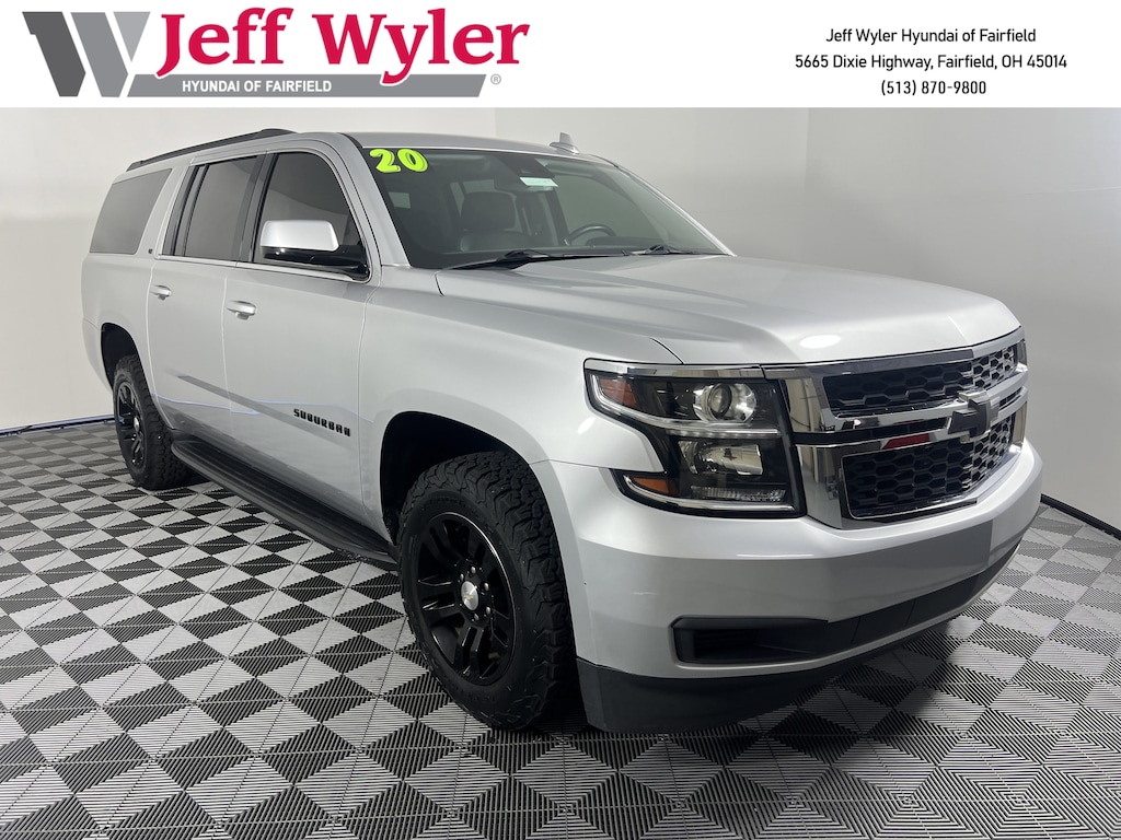 Clean CARFAX. Jeff Wyler Hyundai of Fairfield is proud to offer this terrific 2020 Chevrolet Suburban LT in Silver Ice Metallic. Well equipped with: Enhanced Driver Alert Package (Automatic Emergency Braking, Forward Collision Alert, IntelliBeam w/Automatic High Beam On/Off, Lane Keep Assist w/Lane Departure Warning, and Safety Alert Seat), License Plate Front Mounting Package, Preferred Equipment Group 1LT (12-Volt Auxiliary Power Outlet (5), 1st & 2nd Row Color-Keyed Carpeted Floor Mats, 2nd Row 60/40 Split-Folding Manual Bench, 3rd Row Manual 60/40 Split-Folding Fold Flat Bench, 4-Wheel Antilock Disc Brakes, 6-Way Power Front Passenger Seat Adjuster, Auto-Dimming Inside Rear-View Mirror, Black Assist Steps, Bose Premium Audio System Feature, Color-Keyed Carpeting Floor Covering, Driver Inboard & Front Passenger Airbags, Electronic Cruise Control w/Set & Resume Speed, Extended-Range Remote Keyless Entry, Floor Console w/Storage Area, HD Radio, Leather-Wrapped Steering Wheel, Memory Settings, Power Liftgate, Power-Adjustable Accelerator & Brake Pedals, Rear Park Assist w/Audible Warning, Remote Vehicle Start, Roof-Mounted Luggage Rack Side Rails, SiriusXM Radio, and Universal Home Remote), Premium Smooth Ride Suspension Package, Android Auto, Apple CarPlay, CALL NOW FOR YOUR VIP APPOINTMENT 513-870-9800, FULLY SERVICED w/RECORDS, GUARANTEED FINANCING!! NO MATTER YOUR SITUATION WE CAN GET AN APPROVAL!!, THE #1 Volume dealer in the region! Come see why for yourself Today!!, WE PAY MORE FOR YOUR TRADE!!, 18" x 8.5" High-Polished Aluminum Finish Wheels, 3.08 Rear Axle Ratio, 3rd row seats: split-bench, 4-Wheel Disc Brakes, 9 Speakers, ABS brakes, Adjustable pedals, Air Conditioning, Alloy wheels, AM/FM radio: SiriusXM, Apple CarPlay/Android Auto, Auto High-beam Headlights, Auto-dimming Rear-View mirror, Automatic temperature control, Brake assist, Bumpers: body-color, CD player, Compass, Delay-off headlights, Driver door bin, Driver vanity mirror, Dual front impact airbags, Dual front side impact airbags, Electronic Stability Control, Emergency communication system: OnStar and Chevrolet connected services capable, Exterior Parking Camera Rear, Front anti-roll bar, Front Bucket Seats, Front Center Armrest, Front dual zone A/C, Front reading lights, Front wheel independent suspension, Fully automatic headlights, Garage door transmitter, Heated door mirrors, Heated Front Reclining Bucket Seats, Heated front seats, Illuminated entry, Leather steering wheel, Leather-Appointed Seat Trim, Low tire pressure warning, Memory seat, Occupant sensing airbag, Outside temperature display, Overhead airbag, Overhead console, Panic alarm, Passenger door bin, Passenger vanity mirror, Pedal memory, Power door mirrors, Power driver seat, Power passenger seat, Power steering, Power Tilt-Sliding Sunroof w/Express-Open/Close, Power windows, Radio: AM/FM Stereo w/Chevrolet Infotainment, Rain sensing wipers, Rear air conditioning, Rear anti-roll bar, Rear reading lights, Rear seat center armrest, Rear window defroster, Rear window wiper, Remote keyless entry, Security system, Single-Slot CD/MP3 Player, Speed control, Speed-sensing steering, Split folding rear seat, Spoiler, Steering wheel mounted audio controls, Tachometer, Telescoping steering wheel, Tilt steering wheel, Traction control, Trip computer, Variably intermittent wipers, and Voltmeter. TO CHECK ON THE AVAILABILITY OF THIS VEHICLE REACH OUT TO ONE OF OUR TEAM MEMBERS!! ALSO SHOP ONLINE AT https://www.jeffwylerhyundaioffairfield.com/ Proudly Serving: Cincinnati, Dayton, Columbus, Louisville, Lexington, Indianapolis, Hamilton, Florence, Alexandria, Beavercreek, Springdale, West Chester, Monroe, Fairfield, Kenwood, Newport and all of greater Cincinnati Ohio, Indiana, and Northern Kentucky.