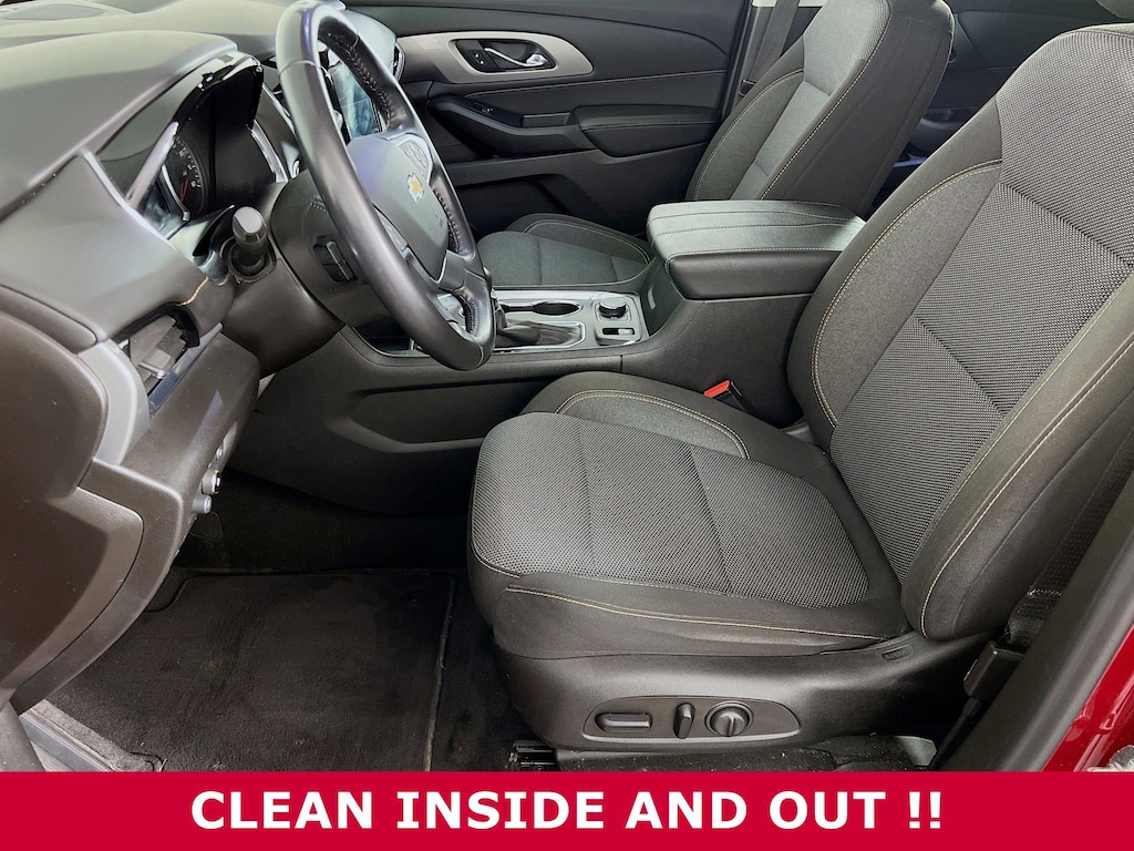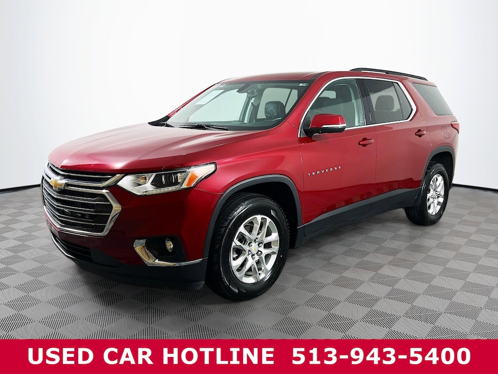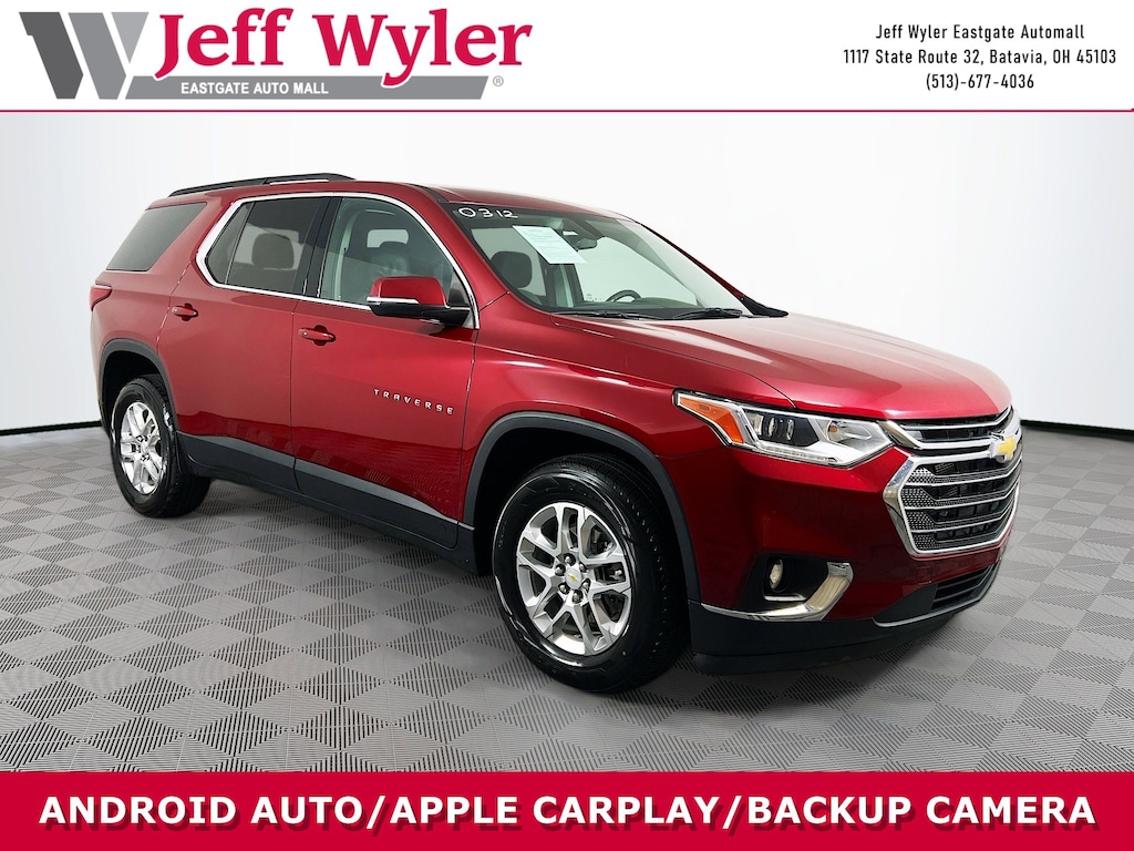 Jeff Wyler Eastgate Auto Mall is pumped up to offer this beautiful 2021 Chevrolet Traverse LT in Cajun Red Tintcoat. Well equipped with: Convenience & Driver Confidence Package (4.2" Multi-Color Enhanced Driver Instrument Display, Heated Driver & Front Passenger Seats, Lane Change Alert w/Side Blind Zone Alert, Radio: Chevrolet Infotainment 3 Plus System, Rear Cross Traffic Alert, Rear Park Assist w/Audible Warning, Rear Power Liftgate, Remote Start, SiriusXM w/360L, and Universal Home Remote), Preferred Equipment Group 1LT, 3.49 Axle Ratio, 3rd row seats: split-bench, 4-Wheel Disc Brakes, 6 Speakers, 7-Passenger Seating (2-2-3 Seating Configuration), ABS brakes, Air Conditioning, Alloy wheels, AM/FM radio: SiriusXM, Apple CarPlay/Android Auto, Automatic temperature control, Brake assist, Bumpers: body-color, Compass, Delay-off headlights, Driver door bin, Driver vanity mirror, Dual front impact airbags, Dual front side impact airbags, Electronic Stability Control, Emergency communication system: OnStar and Chevrolet connected services capable, Four wheel independent suspension, Front anti-roll bar, Front Bucket Seats, Front Center Armrest, Front dual zone A/C, Front fog lights, Front reading lights, Fully automatic headlights, Heated door mirrors, High-Intensity Discharge Headlights, Illuminated entry, Leather steering wheel, Low tire pressure warning, Occupant sensing airbag, Outside temperature display, Overhead airbag, Overhead console, Panic alarm, Passenger door bin, Passenger vanity mirror, Power door mirrors, Power driver seat, Power steering, Power windows, Premium Cloth Seat Trim, Radio data system, Radio: Chevrolet Infotainment System AM/FM Stereo, Rear air conditioning, Rear anti-roll bar, Rear reading lights, Rear window defroster, Rear window wiper, Remote keyless entry, Roof rack: rails only, Security system, SiriusXM Radio, Speed control, Speed-sensing steering, Spoiler, Steering wheel mounted audio controls, Tachometer, Telescoping steering wheel, Tilt steering wheel, Traction control, Trip computer, Turn signal indicator mirrors, Variably intermittent wipers, Voltmeter, and Wheels: 18" Bright Silver Painted Aluminum. CARFAX One-Owner. Clean CARFAX. Awards: * 2021 IIHS Top Safety Pick with optional front crash prevention and specific headlights Ask about available certifications. Used vehicles 10 years of age or newer with less than 100,000 miles are eligible for the Wyler Assurance Program, but eligible vehicles must pass our reconditioning process and multi-point inspection. Provided the vehicle passes inspection, vehicles will be eligible for the 6 month/6,000 mile limited warranty. The 6 month/6,000 mile limited warranty is NOT available on AS-IS vehicles, wholesale vehicles, lease buyback/pass-thru vehicles or un-inspected vehicles. Note that this program can also apply to vehicles where the remaining factory coverage is less than 6 months or 6,000 miles. Please check the Federal Trade Commission (FTC) Buyers guide on the vehicle for full details as to whether or not warranty coverage may apply. Contact Dealer for additional details. The Wyler Assurance 6 month/6,000 Mile limited warranty ends 6 months from the date of the Retail Purchase Agreement (BUYERS ORDER) or when the vehicle's odometer registers 6,000 additional miles to the mileage listed on the BUYERS ORDER, whichever comes first. Your Deductible - The warranty holder on your contract pays the first $100 of each covered repair.