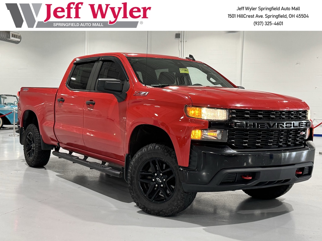 Jeff Wyler Springfield Auto Mall is pumped up to offer this attractive 2022 Chevrolet Silverado 1500 LTD Custom Trail Boss in Red. Well equipped with: Custom Convenience Package (Electric Rear-Window Defogger, EZ Lift Power Lock & Release Tailgate, LED Cargo Area Lighting, Remote Vehicle Starter System, and Theft Deterrent System (Unauthorized Entry)), Infotainment Package (Chevrolet Connected Access Capable, OnStar & Chevrolet Connected Services Capable, SiriusXM Radio, and Wi-Fi Hot Spot Capable), Suspension Package (Heavy-Duty Air Filter and Hill Descent Control), Trailering Package (Hitch Guidance), 220 Amp Alternator, 3.42 Rear Axle Ratio, 3.5" Monochromatic Display Driver Info Center, 4-Wheel Disc Brakes, 40/20/40 Front Split Bench Seat, 6 Speakers, 6-Speaker Audio System, ABS brakes, Air Conditioning, Alloy wheels, AM/FM radio: SiriusXM, Apple CarPlay/Android Auto, Auto-Locking Rear Differential, Bluetooth® For Phone, Brake assist, Cloth Seat Trim, Color-Keyed Carpeting Floor Covering, Compass, Deep-Tinted Glass, Delay-off headlights, Driver door bin, Driver vanity mirror, Dual front impact airbags, Dual front side impact airbags, Electronic Cruise Control, Electronic Stability Control, Front anti-roll bar, Front Center Armrest w/Storage, Front reading lights, Front Rubberized Vinyl Floor Mats, Front wheel independent suspension, Fully automatic headlights, Heated door mirrors, High Gloss Black Grille, Illuminated entry, Low tire pressure warning, Manual Tilt Wheel Steering Column, Occupant sensing airbag, Off-Road Suspension w/2" Lift, Outside temperature display, Overhead airbag, Overhead console, Panic alarm, Passenger door bin, Passenger vanity mirror, Performance Red Recovery Hooks, Power Door Locks, Power door mirrors, Power Front Windows w/Driver Express Up/Down, Power Front Windows w/Passenger Express Down, Power Rear Windows w/Express Down, Power steering, Power windows, Premium audio system: Chevrolet Infotainment 3, Radio data system, Radio: Chevrolet Infotainment 3 System, Rear 60/40 Folding Bench Seat (Folds Up), Rear reading lights, Rear Rubberized-Vinyl Floor Mats, Rear step bumper, Rear window defroster, Remote Keyless Entry, Remote keyless entry, Security system, Speed control, Speed-sensing steering, Split folding rear seat, Standard Tailgate, Tachometer, Tilt steering wheel, Traction control, Trip computer, Variably intermittent wipers, Voltmeter, and Wheels: 18" x 8.5" Black Painted Aluminum. Ask about available certifications. Used vehicles 10 years of age or newer with less than 100,000 miles are eligible for the Wyler Assurance Program, but eligible vehicles must pass our reconditioning process and multi-point inspection. Provided the vehicle passes inspection, vehicles will be eligible for the 6 month/6,000 mile limited warranty. The 6 month/6,000 mile limited warranty is NOT available on AS-IS vehicles, wholesale vehicles, lease buyback/pass-thru vehicles or un-inspected vehicles. Note that this program can also apply to vehicles where the remaining factory coverage is less than 6 months or 6,000 miles. Please check the Federal Trade Commission (FTC) Buyers guide on the vehicle for full details as to whether or not warranty coverage may apply. Contact Dealer for additional details. The Wyler Assurance 6 month/6,000 Mile limited warranty ends 6 months from the date of the Retail Purchase Agreement (BUYERS ORDER) or when the vehicle's odometer registers 6,000 additional miles to the mileage listed on the BUYERS ORDER, whichever comes first. Your Deductible - The warranty holder on your contract pays the first $100 of each covered repair.