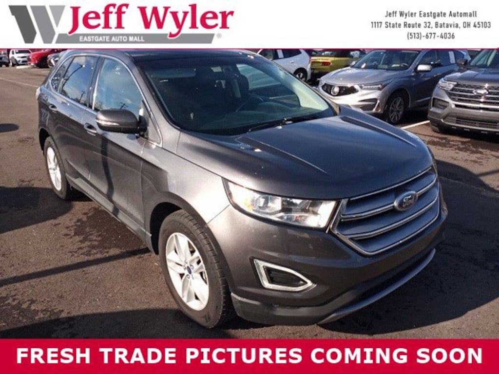 Jeff Wyler Eastgate Auto Mall is proud to offer this wonderful 2016 Ford Edge SEL in Magnetic. Well equipped with: Equipment Group 201A (Leather-Trimmed Heated Bucket Seats, Premium 9 Speaker Audio, and SYNC 3), Technology Package (Auto-Dimming Driver's Sideview Mirror, BLIS Blind Spot Information System, Power Converter 110V Outlet, Radio: AM/FM Stereo w/Single CD/Navigation, Remote Start System, SiriusXM Radio, and SiriusXM Traffic & Travel Link), Utility Package (Foot-Activated Hands-Free Power Liftgate, Perimeter Alarm, and Universal Garage Door Opener), 4-Wheel Disc Brakes, 6 Speakers, ABS brakes, Air Conditioning, Alloy wheels, AM/FM radio: SiriusXM, AM/FM Stereo w/Single CD, Auto-dimming Rear-View mirror, Automatic temperature control, Axle Ratio: 3.16, Brake assist, Bumpers: body-color, CD player, Compass, Delay-off headlights, Driver door bin, Driver vanity mirror, Dual front impact airbags, Dual front side impact airbags, Electronic Stability Control, Emergency communication system, Exterior Parking Camera Rear, Four wheel independent suspension, Front anti-roll bar, Front Bucket Seats, Front Center Armrest w/Storage, Front dual zone A/C, Front reading lights, Fully automatic headlights, Heated door mirrors, Illuminated entry, Knee airbag, Leather Shift Knob, Low tire pressure warning, Occupant sensing airbag, Outside temperature display, Overhead airbag, Overhead console, Panic alarm, Panoramic Vista Roof, Passenger door bin, Passenger vanity mirror, Power door mirrors, Power driver seat, Power passenger seat, Power steering, Power windows, Rear anti-roll bar, Rear Parking Sensors, Rear reading lights, Rear seat center armrest, Rear window defroster, Rear window wiper, Remote keyless entry, Speed control, Speed-Sensitive Wipers, Split folding rear seat, Spoiler, Steering wheel mounted audio controls, SYNC, Tachometer, Telescoping steering wheel, Tilt steering wheel, Traction control, Trip computer, Turn signal indicator mirrors, Unique Cloth Bucket Seats, Variably intermittent wipers, and Wheels: 18" Aluminum Painted Sparkle Silver. Reviews: * Ride quality is smoother than many of its competitors; plenty of space for passengers and luggage; interior is well trimmed with high-quality materials; base engine delivers strong fuel economy; Sport model delivers a substantial performance upgrade; many available tech and luxury features. Source: EdmundsAwards: * 2016 KBB.com Brand Image Awards Ask about available certifications. Used vehicles 10 years of age or newer with less than 100,000 miles are eligible for the Wyler Assurance Program, but eligible vehicles must pass our reconditioning process and multi-point inspection. Provided the vehicle passes inspection, vehicles will be eligible for the 6 month/6,000 mile limited warranty. The 6 month/6,000 mile limited warranty is NOT available on AS-IS vehicles, wholesale vehicles, lease buyback/pass-thru vehicles or un-inspected vehicles. Note that this program can also apply to vehicles where the remaining factory coverage is less than 6 months or 6,000 miles. Please check the Federal Trade Commission (FTC) Buyers guide on the vehicle for full details as to whether or not warranty coverage may apply. Contact Dealer for additional details. The Wyler Assurance 6 month/6,000 Mile limited warranty ends 6 months from the date of the Retail Purchase Agreement (BUYERS ORDER) or when the vehicle's odometer registers 6,000 additional miles to the mileage listed on the BUYERS ORDER, whichever comes first. Your Deductible - The warranty holder on your contract pays the first $100 of each covered repair.