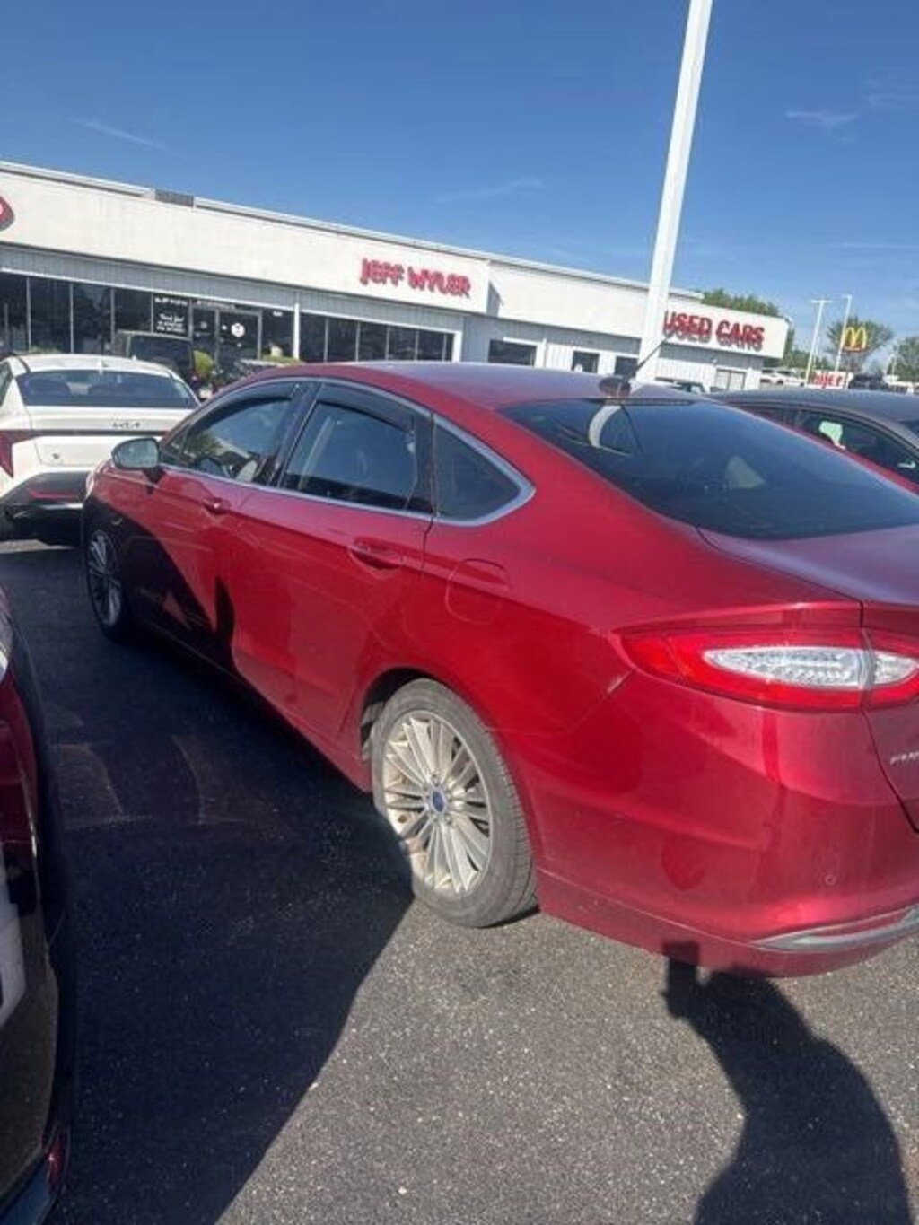 Jeff Wyler Springfield Auto Mall is very proud to offer this wonderful-looking 2016 Ford Fusion SE in Ruby Red Metallic. Well equipped with: Equipment Group 202A, Luxury Package (Auto-Dimming Driver Side Mirror, Auto-Dimming Rear-View Mirror, Chrome Moldings Around Window, Fog Lamps, Heated Leather Front Bucket Seats, Leather-Wrapped Gearshift Knob, Leather-Wrapped Steering Wheel, and Warm Interior Accents), SE MyFord Touch Technology Package (10 Speakers, Dual Zone Electronic Automatic Temperature Control, Reverse Sensing System, and SYNC w/MyFord Touch), 17 Painted Aluminum Wheels, 18 Premium Painted Luxury Wheels, 4-Wheel Disc Brakes, 6 Speakers, ABS brakes, Air Conditioning, Alloy wheels, AM/FM radio: SiriusXM, Brake assist, Bumpers: body-color, CD player, Cloth Front Bucket Seats, Compass, Delay-off headlights, Driver door bin, Driver vanity mirror, Dual front impact airbags, Dual front side impact airbags, Electronic Stability Control, Emergency communication system: 911 Assist, Exterior Parking Camera Rear, Four wheel independent suspension, Front anti-roll bar, Front Bucket Seats, Front Center Armrest, Front License Plate Bracket, Front reading lights, Fully automatic headlights, Heated door mirrors, Illuminated entry, Knee airbag, Low tire pressure warning, Occupant sensing airbag, Outside temperature display, Overhead airbag, Overhead console, Panic alarm, Passenger door bin, Passenger vanity mirror, Power door mirrors, Power driver seat, Power Moonroof, Power passenger seat, Power steering, Power windows, Radio data system, Radio: AM/FM Stereo/MP3/Single-CD, Rear anti-roll bar, Rear reading lights, Rear seat center armrest, Rear window defroster, Remote keyless entry, Security system, SiriusXM Radio, Speed control, Speed-sensing steering, Speed-Sensitive Wipers, Split folding rear seat, Steering wheel mounted audio controls, SYNC Communications & Entertainment System, Tachometer, Telescoping steering wheel, Tilt steering wheel, Traction control, Trip computer, Turn signal indicator mirrors, Universal Garage Door Opener, Variably intermittent wipers, and Voice-Activated Navigation. Awards: