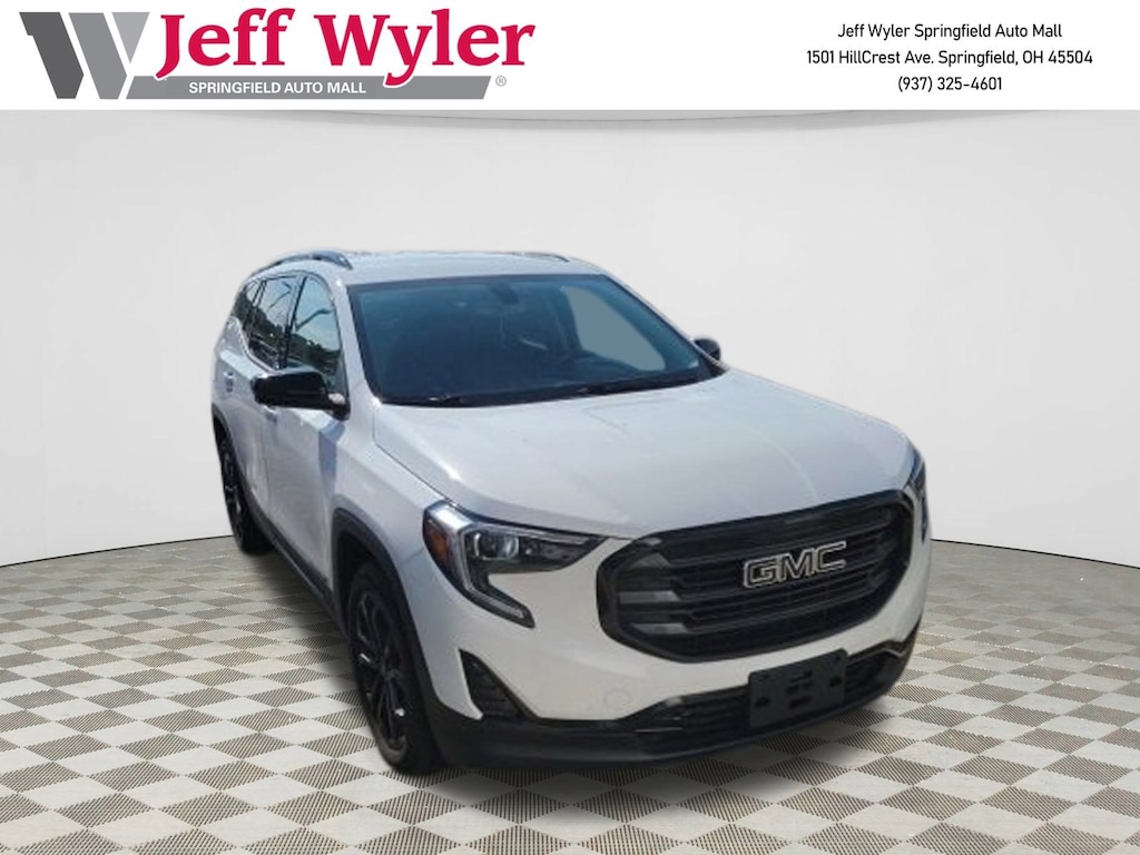 Jeff Wyler Springfield Auto Mall is proud to offer this good-looking 2019 GMC Terrain SLE in Summit White. Well equipped with: Black Edition (Black GMC Center Caps w/Black GMC Lettering, Black Mirror Caps, Darkened Front Grille, Roof-Mounted Luggage Rack Black Side Rails, and Wheels: 19" x 7.5" Gloss Black Painted Aluminum), Driver Convenience Package (8-Way Power Driver Seat Adjuster, Driver & Front Passenger Heated Seats, Dual-Zone Automatic Climate Control, Power Driver Lumbar Control, and Remote Start), Infotainment Package I (110-Volt Power Outlet, 2 USB Data Ports, 2 USB Data Ports w/SD Card Reader, 4.2" Multi-Color Enhanced Driver Information Screen, HD Rear Vision Camera, Radio: GMC Infotainment Audio System w/Navigation, and SiriusXM Radio), License Plate Front Mounting Package, Preferred Equipment Group 3SA, 2 USB Data Ports w/Auxiliary Input Jack, 3.47 Axle Ratio, 4-Way Manual Driver's Seat, 4-Way Manual Front Passenger Seat, 4-Wheel Disc Brakes, 6 Speakers, 6-Speaker Audio System Feature, ABS brakes, Air Conditioning, Alloy wheels, AM/FM radio, Apple CarPlay/Android Auto, Auto-dimming Rear-View mirror, Bluetooth® For Phone, Brake assist, Bumpers: body-color, Compass, Delay-off headlights, Driver door bin, Driver vanity mirror, Dual front impact airbags, Dual front side impact airbags, Electronic Stability Control, Emergency communication system, Exterior Parking Camera Rear, Four wheel independent suspension, Front anti-roll bar, Front Bucket Seats, Front Center Armrest, Front reading lights, Fully automatic headlights, Heated door mirrors, High-Intensity Discharge Headlights, Illuminated entry, Low tire pressure warning, Occupant sensing airbag, Outside temperature display, Overhead airbag, Overhead console, Panic alarm, Passenger door bin, Passenger vanity mirror, Power door mirrors, Power steering, Power windows, Premium Cloth Seat Trim, Radio data system, Radio: GMC Infotainment Audio System w/7" Display, Rear anti-roll bar, Rear seat center armrest, Rear window defroster, Rear window wiper, Remote keyless entry, Security system, Speed control, Speed-sensing steering, Split folding rear seat, Spoiler, Steering wheel mounted audio controls, Tachometer, Telescoping steering wheel, Tilt steering wheel, Traction control, Trip computer, Variably intermittent wipers, and Wheels: 17" x 7" Silver Painted Aluminum. Awards: * JD Power Automotive Performance, Execution and Layout (APEAL) Study Ask about available certifications. Used vehicles 10 years of age or newer with less than 100,000 miles are eligible for the Wyler Assurance Program, but eligible vehicles must pass our reconditioning process and multi-point inspection. Provided the vehicle passes inspection, vehicles will be eligible for the 6 month/6,000 mile limited warranty. The 6 month/6,000 mile limited warranty is NOT available on AS-IS vehicles, wholesale vehicles, lease buyback/pass-thru vehicles or un-inspected vehicles. Note that this program can also apply to vehicles where the remaining factory coverage is less than 6 months or 6,000 miles. Please check the Federal Trade Commission (FTC) Buyers guide on the vehicle for full details as to whether or not warranty coverage may apply. Contact Dealer for additional details. The Wyler Assurance 6 month/6,000 Mile limited warranty ends 6 months from the date of the Retail Purchase Agreement (BUYERS ORDER) or when the vehicle's odometer registers 6,000 additional miles to the mileage listed on the BUYERS ORDER, whichever comes first. Your Deductible - The warranty holder on your contract pays the first $100 of each covered repair.