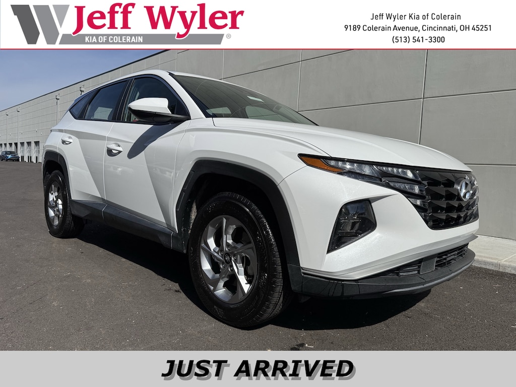 Jeff Wyler Kia of Colerain is honored to offer this fantastic-looking 2023 Hyundai Tucson SE in Serenity White Pearl. Option Group 01, 3.648 Axle Ratio, 4-Wheel Disc Brakes, 6 Speakers, ABS brakes, Air Conditioning, Alloy wheels, AM/FM radio, Apple CarPlay & Android Auto, Auto High-beam Headlights, Brake assist, Bumpers: body-color, Cargo Cover, Cargo Tray, Carpeted Floor Mats, Delay-off headlights, Driver door bin, Driver vanity mirror, Dual front impact airbags, Dual front side impact airbags, Electronic Stability Control, First Aid Kit, Four wheel independent suspension, Front anti-roll bar, Front Bucket Seats, Front Center Armrest, Front reading lights, Fully automatic headlights, Illuminated entry, Low tire pressure warning, Occupant sensing airbag, Outside temperature display, Overhead airbag, Overhead console, Panic alarm, Passenger door bin, Passenger vanity mirror, Power door mirrors, Power steering, Power windows, Radio data system, Radio: AM/FM/HD Audio System, Rear anti-roll bar, Rear seat center armrest, Rear window defroster, Rear window wiper, Remote keyless entry, Security system, Speed control, Split folding rear seat, Spoiler, Stain & Odor Resistant Cloth Seat Trim, Steering wheel mounted audio controls, Tachometer, Telescoping steering wheel, Tilt steering wheel, Traction control, Trip computer, Variably intermittent wipers, and Wheels: 17" x 7.0J" Alloy Our PRE-OWNED vehicles are put through a rigorous 167- POINT QUALITY ASSURANCE INSPECTION along with an average amount of over $1,400.00 SPENT to recondition each vehicle so we can be sure to deliver you the highest quality vehicle like you deserve! ***ONLINE PRICE DOES NOT INCLUDE WYLER FAMILY FIRST PACKAGE***