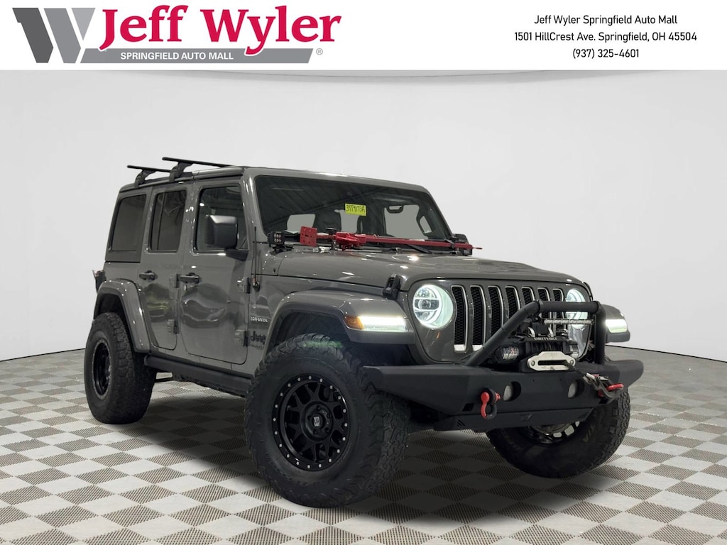 Jeff Wyler Springfield Auto Mall is proud to offer this superb-looking 2019 Jeep Wrangler Unlimited Sahara in Sting-Gray Clearcoat. Well equipped with: 8.4" Radio & Premium Audio Group (1-Year SiriusXM Guardian Trial, 4G LTE Wi-Fi Hot Spot, 5-Year SiriusXM Traffic Service, 5-Year SiriusXM Travel Link Service, 8.4" Touchscreen Display, Auto-Dimming Rear-View Mirror, Emergency/Assistance Call, For Details, Visit DriveUconnect.ca, GPS Navigation, HD Radio, Radio: Uconnect 4C Nav w/8.4" Display, SiriusXM Traffic Plus, and SiriusXM Travel Link), Advanced Safety Group (Advanced Brake Assist and Full Speed Forward Collision Warning Plus), Cold Weather Group (Heated Front Seats and Heated Steering Wheel), LED Lighting Group (Daytime Running Lamps LED Accents, Front LED Fog Lamps, LED Reflector Headlamps, and LED Taillamps), Quick Order Package 24G, Safety Group (Blind Spot & Cross Path Detection and ParkSense Rear Park Assist System), Trailer Tow & HD Electrical Group (240 Amp Alternator, 7 & 4 Pin Wiring Harness, 700 Amp Maintenance Free Battery, Auxiliary Switches, and Class II Receiver Hitch), 3.45 Rear Axle Ratio, 4-Wheel Disc Brakes, 8 Speakers, ABS brakes, Air Conditioning, Alloy wheels, Alpine Premium Audio System, AM/FM radio: SiriusXM, Apple CarPlay/Android Auto, Automatic temperature control, Black 3-Piece Hard Top, Brake assist, Cloth Low-Back Bucket Seats, Compass, Delay-off headlights, Driver door bin, Driver vanity mirror, Dual front impact airbags, Dual front side impact airbags, Electronic Stability Control, Freedom Panel Storage Bag, Front anti-roll bar, Front Bucket Seats, Front Center Armrest w/Storage, Front dual zone A/C, Front fog lights, Front reading lights, Fully automatic headlights, Garage door transmitter, Heated door mirrors, Heavy Duty Suspension w/Gas Shocks, Illuminated entry, Integrated roll-over protection, Leather steering wheel, Low tire pressure warning, MOPAR All-Weather Floor Mats, No Soft Top, Non-Lock Fuel Cap w/o Discriminator, Occupant sensing airbag, Outside temperature display, Panic alarm, ParkView Rear Back-Up Camera, Passenger door bin, Passenger vanity mirror, Power door mirrors, Power steering, Power windows, Radio data system, Radio: Uconnect 4 w/7" Display, Rear anti-roll bar, Rear reading lights, Rear Window Defroster, Rear Window Wiper/Washer, Remote keyless entry, Remote Start System, Security system, Speed control, Split folding rear seat, Steering wheel mounted audio controls, Tachometer, Telescoping steering wheel, Tilt steering wheel, Traction control, Trip computer, Variably intermittent wipers, Voltmeter, and Wheels: 18" x 7.5" Polished w/Gray SpokeS. Ask about available certifications. Used vehicles 10 years of age or newer with less than 100,000 miles are eligible for the Wyler Assurance Program, but eligible vehicles must pass our reconditioning process and multi-point inspection. Provided the vehicle passes inspection, vehicles will be eligible for the 6 month/6,000 mile limited warranty. The 6 month/6,000 mile limited warranty is NOT available on AS-IS vehicles, wholesale vehicles, lease buyback/pass-thru vehicles or un-inspected vehicles. Note that this program can also apply to vehicles where the remaining factory coverage is less than 6 months or 6,000 miles. Please check the Federal Trade Commission (FTC) Buyers guide on the vehicle for full details as to whether or not warranty coverage may apply. Contact Dealer for additional details. The Wyler Assurance 6 month/6,000 Mile limited warranty ends 6 months from the date of the Retail Purchase Agreement (BUYERS ORDER) or when the vehicle's odometer registers 6,000 additional miles to the mileage listed on the BUYERS ORDER, whichever comes first. Your Deductible - The warranty holder on your contract pays the first $100 of each covered repair.