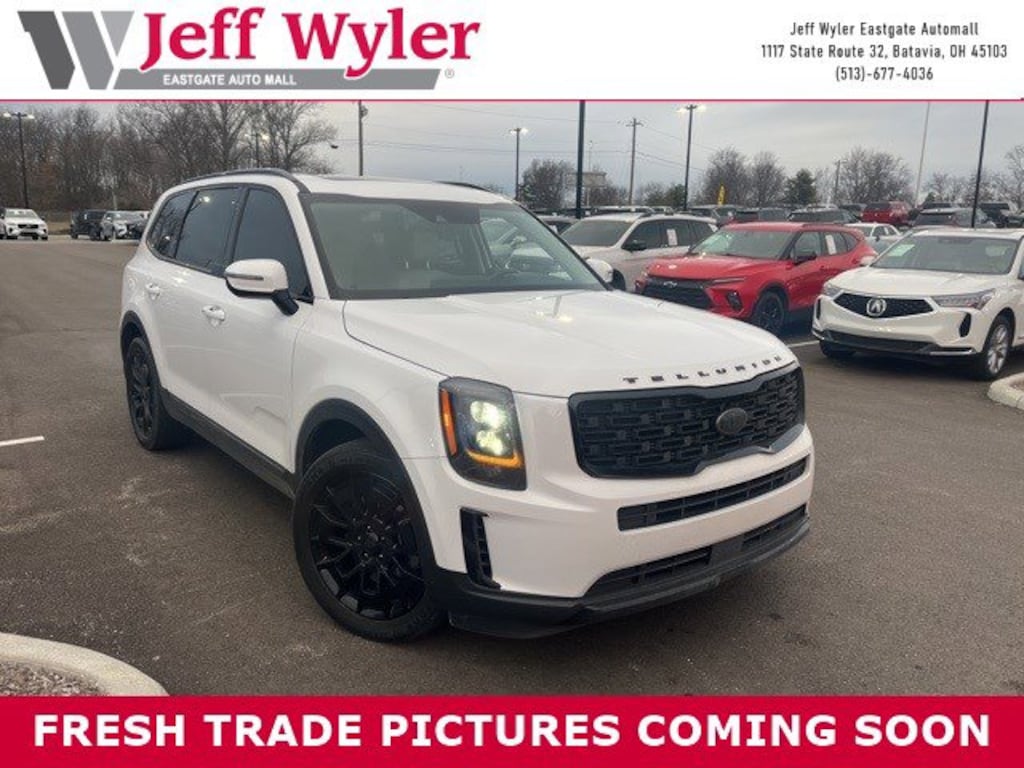 Jeff Wyler Eastgate Auto Mall is pleased to offer this great 2021 Kia Telluride EX in Glacial White Pearl. Well equipped with: EX Premium Package (2nd Row Captain Chairs, LED Headlamps, Satin Chrome Roof Rails, and Wheels: 7.5" x 20" Machined Finish Alloy), Nightfall Edition Package (Black Finish Radiator Grille, Exclusive Black Headlight Bezels, Front & Rear Gloss Black Finish Bumper Skid Plates, Front & Rear KIA Logo, Gloss Black Finish Exterior Emblems, Gloss Black Finish Front & Rear Door Garnish, Gloss Black Finish Roof Rails, and Wheels: 7.5" x 20" Exclusive Black Finish Alloy), 3.648 Axle Ratio, 3rd row seats: split-bench, 4-Wheel Disc Brakes, 6 Speakers, ABS brakes, Air Conditioning, Alloy wheels, AM/FM radio: SiriusXM, Apple CarPlay & Android Auto, Auto-dimming Rear-View mirror, Automatic temperature control, Brake assist, Bumpers: body-color, Carpeted Floor Mats, Compass, Delay-off headlights, Driver door bin, Driver vanity mirror, Dual front impact airbags, Dual front side impact airbags, Electronic Stability Control, Emergency communication system: 911 Connect, Four wheel independent suspension, Front anti-roll bar, Front Bucket Seats, Front Center Armrest, Front dual zone A/C, Front reading lights, Fully automatic headlights, Heated & Ventilated Front Bucket Seats, Heated door mirrors, Heated front seats, Heated steering wheel, Illuminated entry, Knee airbag, Leather Seat Trim, Leather Shift Knob, Leather steering wheel, Low tire pressure warning, Navigation System, Occupant sensing airbag, Outside temperature display, Overhead airbag, Overhead console, Panic alarm, Passenger door bin, Passenger vanity mirror, Power door mirrors, Power driver seat, Power Liftgate, Power moonroof, Power passenger seat, Power steering, Power windows, Radio data system, Radio: AM/FM/SIRIUS Display Audio, Rear air conditioning, Rear anti-roll bar, Rear audio controls, Rear reading lights, Rear seat center armrest, Rear window defroster, Rear window wiper, Reclining 3rd row seat, Remote keyless entry, Roof rack: rails only, Security system, Smart Key w/ Push Button and Remote Start, Speed control, Speed-sensing steering, Split folding rear seat, Spoiler, Steering wheel mounted audio controls, Tachometer, Telescoping steering wheel, Tilt steering wheel, Traction control, Trip computer, Turn signal indicator mirrors, Variably intermittent wipers, Ventilated front seats, and Wheels: 7.5" x 18" Machined Finish Alloy. Awards: * JD Power Automotive Performance, Execution and Layout (APEAL) Study, Initial Quality Study (IQS) * JD Power Initial Quality Study (IQS) Ask about available certifications. Used vehicles 10 years of age or newer with less than 100,000 miles are eligible for the Wyler Assurance Program, but eligible vehicles must pass our reconditioning process and multi-point inspection. Provided the vehicle passes inspection, vehicles will be eligible for the 6 month/6,000 mile limited warranty. The 6 month/6,000 mile limited warranty is NOT available on AS-IS vehicles, wholesale vehicles, lease buyback/pass-thru vehicles or un-inspected vehicles. Note that this program can also apply to vehicles where the remaining factory coverage is less than 6 months or 6,000 miles. Please check the Federal Trade Commission (FTC) Buyers guide on the vehicle for full details as to whether or not warranty coverage may apply. Contact Dealer for additional details. The Wyler Assurance 6 month/6,000 Mile limited warranty ends 6 months from the date of the Retail Purchase Agreement (BUYERS ORDER) or when the vehicle's odometer registers 6,000 additional miles to the mileage listed on the BUYERS ORDER, whichever comes first. Your Deductible - The warranty holder on your contract pays the first $100 of each covered repair.