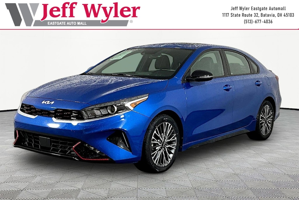 Jeff Wyler Eastgate Auto Mall is honored to offer this good-looking 2023 Kia Forte GT-Line in Sporty Blue. Well equipped with: GT-Line Premium Package (Electronic Parking Brake (EPB), Forward Collision Avoidance-Assist - Cyclist, LED Interior Lighting, Navigation-Based Smart Cruise Control (NSCC), Power Sunroof, Radio: harman kardon Premium Audio, Smart Cruise Control w/Stop & Go, and Wireless Charging), GT-Line Sport Premium Package (10-Way Power Driver's Seat, Heated & Ventilated Front Seats, Rear AC Vent, Rear USB Charger, and SynTex Seat Trim), 17" x 7.0J Alloy Wheels, 4-Wheel Disc Brakes, 6 Speakers, ABS brakes, Air Conditioning, Alloy wheels, AM/FM radio: SiriusXM, Apple CarPlay & Android Auto, Auto High-beam Headlights, Automatic temperature control, Brake assist, Bumpers: body-color, Cloth & SynTex Seat Trim, Delay-off headlights, Driver door bin, Driver vanity mirror, Dual front impact airbags, Dual front side impact airbags, Electronic Stability Control, Emergency communication system, Exterior Parking Camera Rear, Front anti-roll bar, Front Bucket Seats, Front Center Armrest, Front dual zone A/C, Front fog lights, Front reading lights, Front wheel independent suspension, Fully automatic headlights, Heated door mirrors, Illuminated entry, Leather Shift Knob, Leather steering wheel, Low tire pressure warning, Navigation System, Occupant sensing airbag, Outside temperature display, Overhead airbag, Overhead console, Panic alarm, Passenger door bin, Passenger vanity mirror, Power door mirrors, Power steering, Power windows, Radio data system, Radio: 10.25" Display Audio, Rear seat center armrest, Rear window defroster, Remote keyless entry, Security system, Speed control, Split folding rear seat, Spoiler, Sport steering wheel, Steering wheel mounted audio controls, Tachometer, Telescoping steering wheel, Tilt steering wheel, Traction control, Trip computer, Turn signal indicator mirrors, and Variably intermittent wipers. CARFAX One-Owner. Clean CARFAX. Ask about available certifications. Used vehicles 10 years of age or newer with less than 100,000 miles are eligible for the Wyler Assurance Program, but eligible vehicles must pass our reconditioning process and multi-point inspection. Provided the vehicle passes inspection, vehicles will be eligible for the 6 month/6,000 mile limited warranty. The 6 month/6,000 mile limited warranty is NOT available on AS-IS vehicles, wholesale vehicles, lease buyback/pass-thru vehicles or un-inspected vehicles. Note that this program can also apply to vehicles where the remaining factory coverage is less than 6 months or 6,000 miles. Please check the Federal Trade Commission (FTC) Buyers guide on the vehicle for full details as to whether or not warranty coverage may apply. Contact Dealer for additional details. The Wyler Assurance 6 month/6,000 Mile limited warranty ends 6 months from the date of the Retail Purchase Agreement (BUYERS ORDER) or when the vehicle's odometer registers 6,000 additional miles to the mileage listed on the BUYERS ORDER, whichever comes first. Your Deductible - The warranty holder on your contract pays the first $100 of each covered repair.