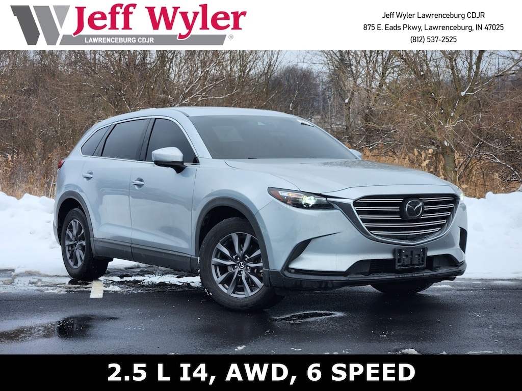 Jeff Wyler Chrysler Dodge Jeep of Lawrenceburg is proud to offer this gorgeous 2023 Mazda CX-9 Touring in Sonic Silver Metallic. AWD, 3rd row seats: bench, 4-Wheel Disc Brakes, 4.411 Axle Ratio, 6 Speakers, ABS brakes, Air Conditioning, Alloy wheels, AM/FM radio, AppLink/Apple CarPlay and Android Auto, Auto High-beam Headlights, Auto-dimming Rear-View mirror, Automatic temperature control, Brake assist, Bumpers: body-color, Compass, Delay-off headlights, Driver door bin, Driver vanity mirror, Dual front impact airbags, Dual front side impact airbags, E911 Automatic Emergency Notification, Electronic Stability Control, Emergency communication system: MAZDA CONNECT, Exterior Parking Camera Rear, Four wheel independent suspension, Front anti-roll bar, Front Bucket Seats, Front Center Armrest, Front dual zone A/C, Front fog lights, Front reading lights, Fully automatic headlights, Garage door transmitter: HomeLink, Heated door mirrors, Heated Front Bucket Seats, Heated front seats, Illuminated entry, Infotainment System Voice Command, Leather Seat Trim, Leather Shift Knob, Leather steering wheel, Low tire pressure warning, Mazda Connected Services, Occupant sensing airbag, Outside temperature display, Overhead airbag, Overhead console, Pandora Internet Radio Integration, Panic alarm, Passenger door bin, Passenger vanity mirror, Power door mirrors, Power driver seat, Power Liftgate, Power moonroof, Power passenger seat, Power steering, Power windows, Radio Broadcast Data System Program Information, Radio data system, Radio: AM/FM Sound System, Rain sensing wipers, Rear air conditioning, Rear anti-roll bar, Rear reading lights, Rear window defroster, Rear window wiper, Remote keyless entry, SMS Text Msg Audio Delivery & Reply, Speed control, Speed-sensing steering, Split folding rear seat, Spoiler, Steering wheel mounted audio controls, Tachometer, Telescoping steering wheel, Tilt steering wheel, Traction control, Trip computer, Turn signal indicator mirrors, Variably intermittent wipers, and Wheels: 18" x 8J Aluminum Alloy Our PRE-OWNED vehicles are put through a rigorous 167- POINT QUALITY ASSURANCE INSPECTION along with an average amount of over $1,400.00 SPENT to recondition each vehicle so we can be sure to deliver you the highest quality vehicle like you deserve! ***ONLINE PRICE DOES NOT INCLUDE WYLER FAMILY FIRST PACKAGE*** Stop by 4136 Shelbyville Road to see for yourself, or give us a call @ 502-897-3151 to schedule your test drive! Ask about available certifications.