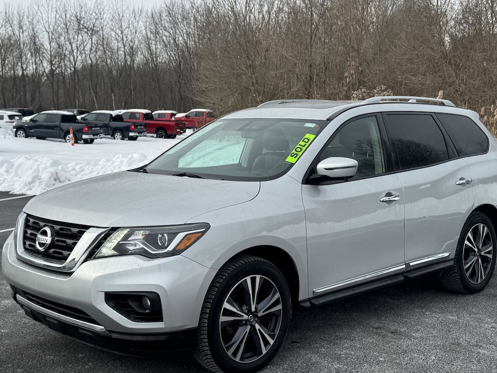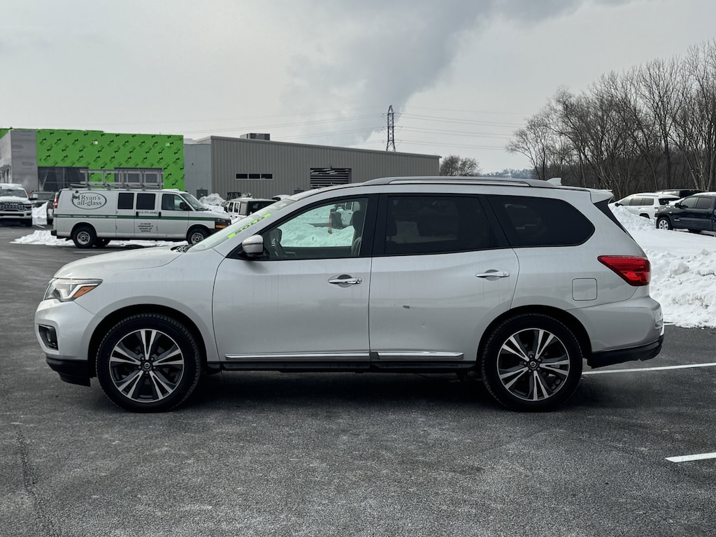 Jeff Wyler Chrysler Dodge Jeep of Lawrenceburg is honored to offer this gorgeous-looking 2020 Nissan Pathfinder Platinum in Brilliant Silver Metallic. 4WD, 13 Speakers, 3rd row seats: bench, 4-Wheel Disc Brakes, 5.25 Axle Ratio, ABS brakes, Air Conditioning, Alloy wheels, AM/FM radio: SiriusXM, Auto tilt-away steering wheel, Auto-dimming Rear-View mirror, Automatic temperature control, Blind Spot Warning, Bodyside moldings, Bose Premium Audio System, Brake assist, Bumpers: body-color, Carpeted Floor Mats (4-pc Set), CD player, Climate Controlled Front Bucket Seats, Delay-off headlights, Driver door bin, Driver vanity mirror, Dual front impact airbags, Dual front side impact airbags, Electronic Stability Control, Emergency communication system: NissanConnect Services, Exterior Parking Camera Rear, Four wheel independent suspension, Front anti-roll bar, Front Bucket Seats, Front Center Armrest, Front dual zone A/C, Front fog lights, Front reading lights, Fully automatic headlights, Garage door transmitter: HomeLink, Heated door mirrors, Heated front seats, Heated rear seats, Heated steering wheel, Illuminated entry, Leather Seating Surfaces, Leather Shift Knob, Leather steering wheel, Low tire pressure warning, Memory seat, Navigation System, NissanConnect w/Navigation & Services, Occupant sensing airbag, Outside temperature display, Overhead airbag, Overhead console, Panic alarm, Passenger door bin, Passenger vanity mirror, Power door mirrors, Power driver seat, Power Liftgate, Power moonroof, Power passenger seat, Power steering, Power windows, Radio data system, Radio: AM/FM/CD Audio System w/NissanConnect, Rear air conditioning, Rear anti-roll bar, Rear Parking Sensors, Rear reading lights, Rear seat center armrest, Rear window defroster, Rear window wiper, Reclining 3rd row seat, Remote keyless entry, Security system, SiriusXM Traffic, Speed control, Speed-sensing steering, Speed-Sensitive Wipers, Split folding rear seat, Spoiler, Steering wheel memory, Steering wheel mounted audio controls, Tachometer, Telescoping steering wheel, Tilt steering wheel, Traction control, Trip computer, Turn signal indicator mirrors, Variably intermittent wipers, Ventilated front seats, and Wheels: 20" x 7.5 J Machined Aluminum-Alloy Our PRE-OWNED vehicles are put through a rigorous 167- POINT QUALITY ASSURANCE INSPECTION along with an average amount of over $1,400.00 SPENT to recondition each vehicle so we can be sure to deliver you the highest quality vehicle like you deserve! ***ONLINE PRICE DOES NOT INCLUDE WYLER FAMILY FIRST PACKAGE*** Stop by 4136 Shelbyville Road to see for yourself, or give us a call @ 502-897-3151 to schedule your test drive! Ask about available certifications.