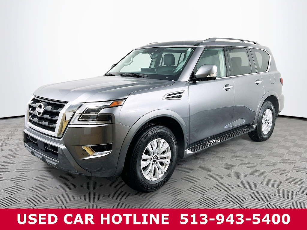 Jeff Wyler Eastgate Auto Mall is pumped up to offer this outstanding 2023 Nissan Armada SV in Gun Metallic. Well equipped with: Cargo Package, 18" x 8J Alloy Wheels, 2.94 Axle Ratio, 3rd Row Carpeted Floor Mats - Bench Seat, 3rd row seats: split-bench, 4-Wheel Disc Brakes, 6 Speakers, ABS brakes, Air Conditioning, Alloy wheels, AM/FM radio: SiriusXM, Anti-whiplash front head restraints, Auto High-beam Headlights, Auto tilt-away steering wheel, Auto-dimming Rear-View mirror, Auto-leveling suspension, Automatic temperature control, Brake assist, Bumpers: body-color, Delay-off headlights, Driver door bin, Driver vanity mirror, Dual front impact airbags, Dual front side impact airbags, Electronic Stability Control, Emergency communication system: NissanConnect Services, Four wheel independent suspension, Front anti-roll bar, Front Bucket Seats, Front Center Armrest, Front dual zone A/C, Front fog lights, Front reading lights, Fully automatic headlights, Garage door transmitter, Heated door mirrors, Heated Front Bucket Seats, Heated front seats, Illuminated entry, Knee airbag, Leather Shift Knob, Leatherette Seat Trim, Low tire pressure warning, Navigation System, NissanConnect featuring Apple CarPlay and Android Auto, Occupant sensing airbag, Outside temperature display, Overhead airbag, Overhead console, Panic alarm, Passenger door bin, Passenger vanity mirror, Power door mirrors, Power driver seat, Power passenger seat, Power steering, Power windows, Radio: NissanConnect w/SiriusXM, Rear air conditioning, Rear anti-roll bar, Rear reading lights, Rear seat center armrest, Rear window defroster, Rear window wiper, Reclining 3rd row seat, Remote keyless entry, Security system, Speed control, Speed-sensing steering, Speed-Sensitive Wipers, Split folding rear seat, Spoiler, Steering wheel mounted audio controls, Tachometer, Telescoping steering wheel, Tilt steering wheel, Traction control, Trip computer, Turn signal indicator mirrors, Variably intermittent wipers, and Voltmeter. CARFAX One-Owner. Clean CARFAX. Ask about available certifications. Used vehicles 10 years of age or newer with less than 100,000 miles are eligible for the Wyler Assurance Program, but eligible vehicles must pass our reconditioning process and multi-point inspection. Provided the vehicle passes inspection, vehicles will be eligible for the 6 month/6,000 mile limited warranty. The 6 month/6,000 mile limited warranty is NOT available on AS-IS vehicles, wholesale vehicles, lease buyback/pass-thru vehicles or un-inspected vehicles. Note that this program can also apply to vehicles where the remaining factory coverage is less than 6 months or 6,000 miles. Please check the Federal Trade Commission (FTC) Buyers guide on the vehicle for full details as to whether or not warranty coverage may apply. Contact Dealer for additional details. The Wyler Assurance 6 month/6,000 Mile limited warranty ends 6 months from the date of the Retail Purchase Agreement (BUYERS ORDER) or when the vehicle's odometer registers 6,000 additional miles to the mileage listed on the BUYERS ORDER, whichever comes first. Your Deductible - The warranty holder on your contract pays the first $100 of each covered repair.