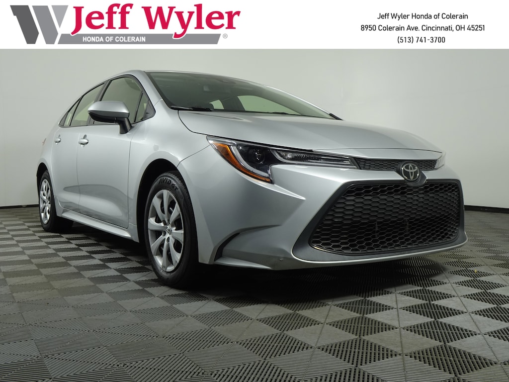 Jeff Wyler Honda of Colerain is pumped up to offer this beautiful 2021 Toyota Corolla LE in . Well equipped with: 4-Wheel Disc Brakes, 6 Speakers, ABS brakes, Air Conditioning, AM/FM radio: SiriusXM, Apple CarPlay/Android Auto, Auto High-beam Headlights, Automatic temperature control, Brake assist, Bumpers: body-color, Delay-off headlights, Driver door bin, Driver vanity mirror, Dual front impact airbags, Dual front side impact airbags, Electronic Stability Control, Emergency communication system: Safety Connect with 1-year trial, Exterior Parking Camera Rear, Four wheel independent suspension, Front anti-roll bar, Front Bucket Seats, Front Center Armrest, Front reading lights, Fully automatic headlights, Illuminated entry, Knee airbag, Low tire pressure warning, Occupant sensing airbag, Outside temperature display, Overhead airbag, Panic alarm, Passenger door bin, Passenger vanity mirror, Power door mirrors, Power steering, Power windows, Premium Fabric Seat Trim, Radio data system, Radio: Audio, Rear anti-roll bar, Rear seat center armrest, Rear side impact airbag, Rear window defroster, Remote keyless entry, Security system, Speed control, Split folding rear seat, Steering wheel mounted audio controls, Tachometer, Telescoping steering wheel, Tilt steering wheel, Traction control, Trip computer, Variably intermittent wipers, and Wheels: 16" Wide Vent Steel.
